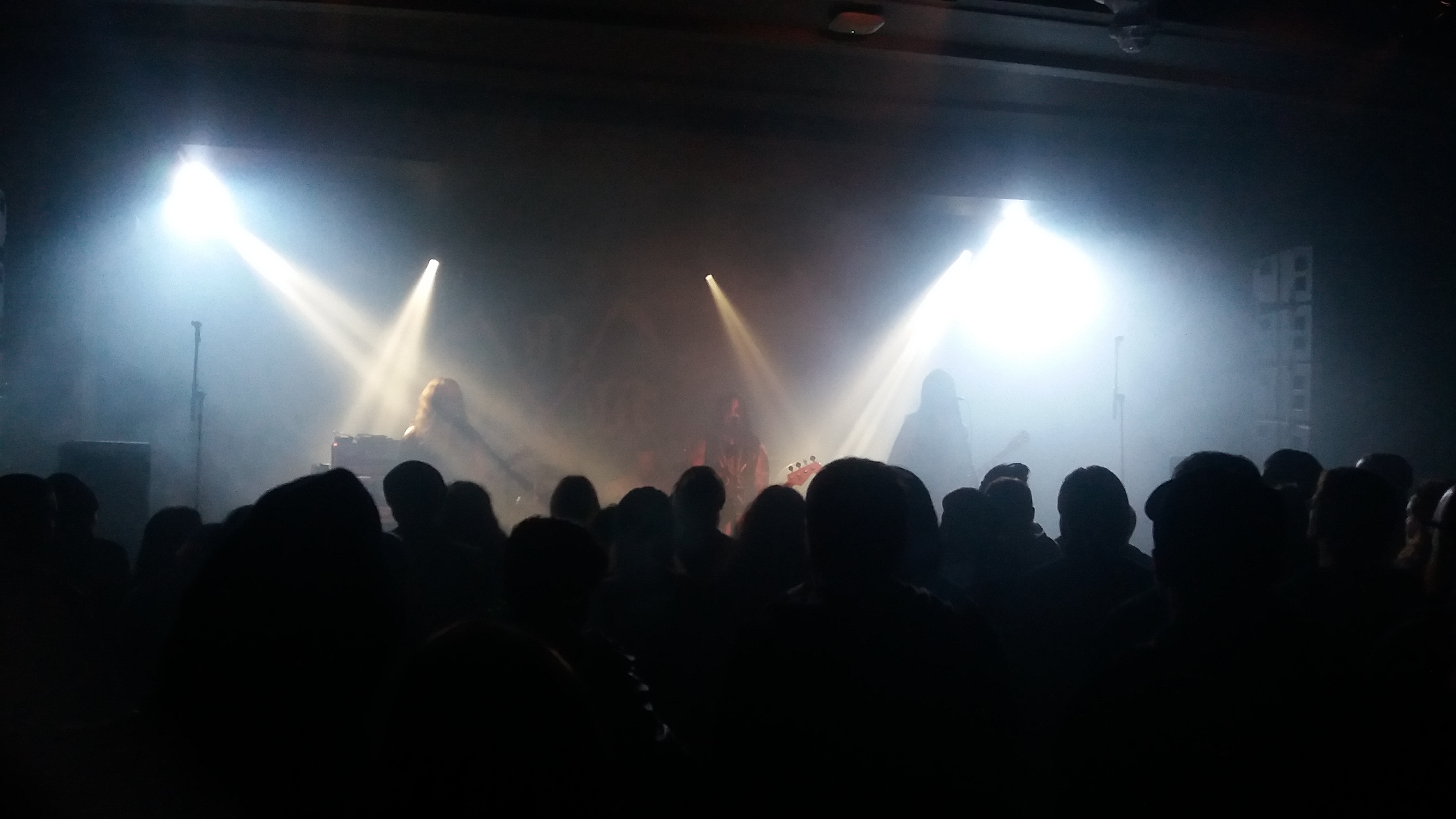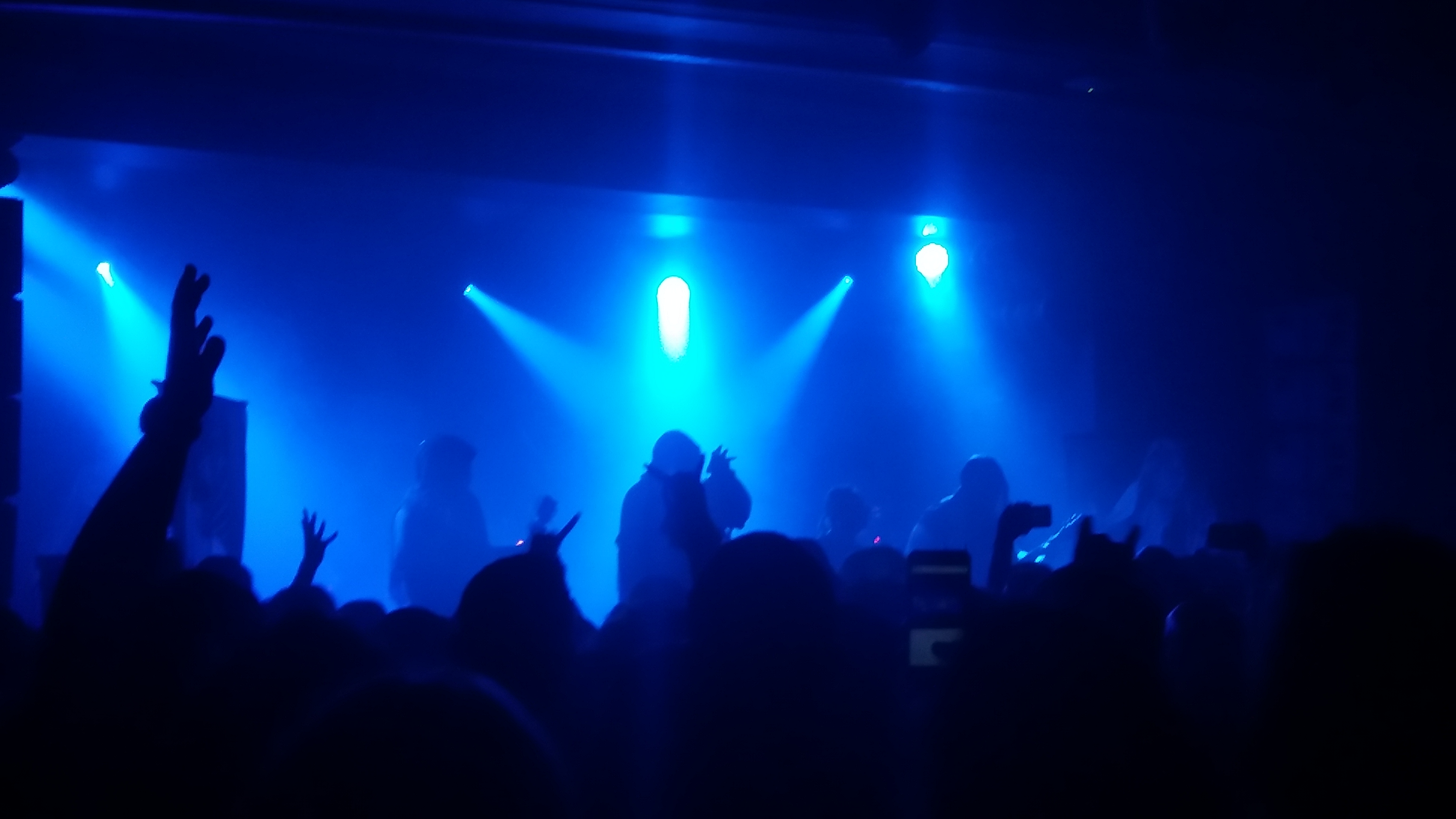 Kiedy już udało mi się dobrnąć do wnętrza klubu, zaskoczyła mnie kolejna rzecz. Amerykanie od samego wejścia ustawiają się w kolejce po merch głównej gwiazdy. Kolejka posuwa się bardzo powoli i nie rozprasza się, aż do zejścia ostatniego rozgrzewacza ze sceny. A wszystko w oparach zielonego dymu, co w sumie nie dziwi, bo marihuanę czuć tu na co drugim rogu ulicy. Jeszcze tylko ostatnia kwestia- kwestia społeczna, czyli jaki jest przekrój etniczny koncertu black metalowego w Kalifornii? Wszystkie wyliczenia oczywiście na oko, ale powiedziałbym, że 90% stanowią biali i latynosi, a pozostałe 10% azjaci i afrykanie. Niezależnie od pochodzenia, wszyscy byli dość niemrawi- porządny młyn pojawił się na krótką chwilę, dopiero podczas występu samego Mayhem. Przez resztę czasu publika głównie machała rękami, z przerwami na krótki przebieżki w circle picie.