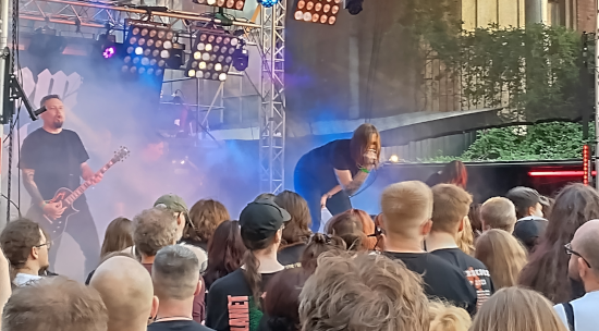 Organizator poradził sobie z tą sytuacją całkiem nieźle i większość wykonawców zagrała tego dnia, chociaż w wielu przypadkach o innych porach niż planowano. Jedynym wyjątkiem był znany z Eurowizji niemiecki Lord of the Lost, którego muzycy pojawili się jedynie przy stole Meet & Greet. Moim zdaniem, żadna strata, ale wiele osób się mocno oburzyło w mediach społecznościowych.